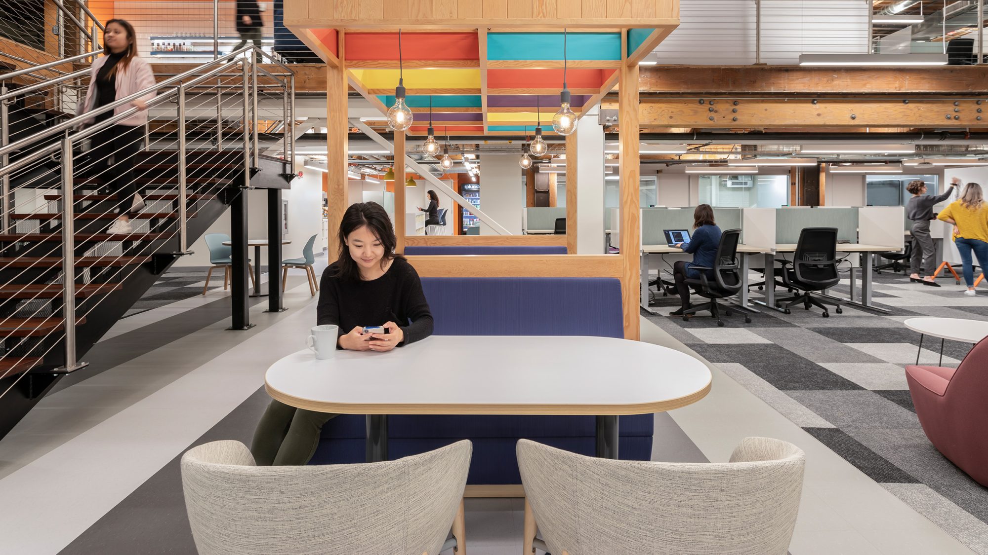 Le nouveau lieu de travail de Splunk offre de multiples configurations de travail, reliant les collaborateurs entre eux, à l’histoire du bâtiment et à la ville de San Francisco.