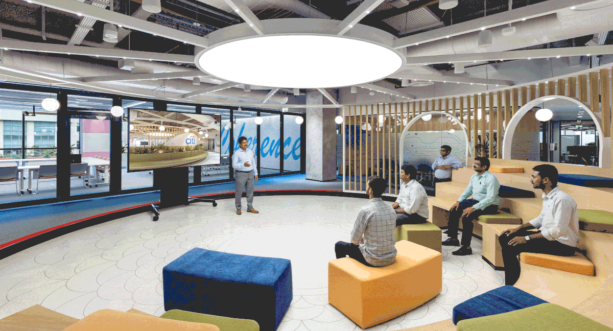 花旗银行钦奈园区融合了灵活办公、团队协作、品牌形象和员工健康等多方面因素,打造了一个直观且包容的工作场所。这个办公空间也通过反映品牌形象和致敬钦奈的特色元素,进而体现出花旗银行的企业文化和发展目标。