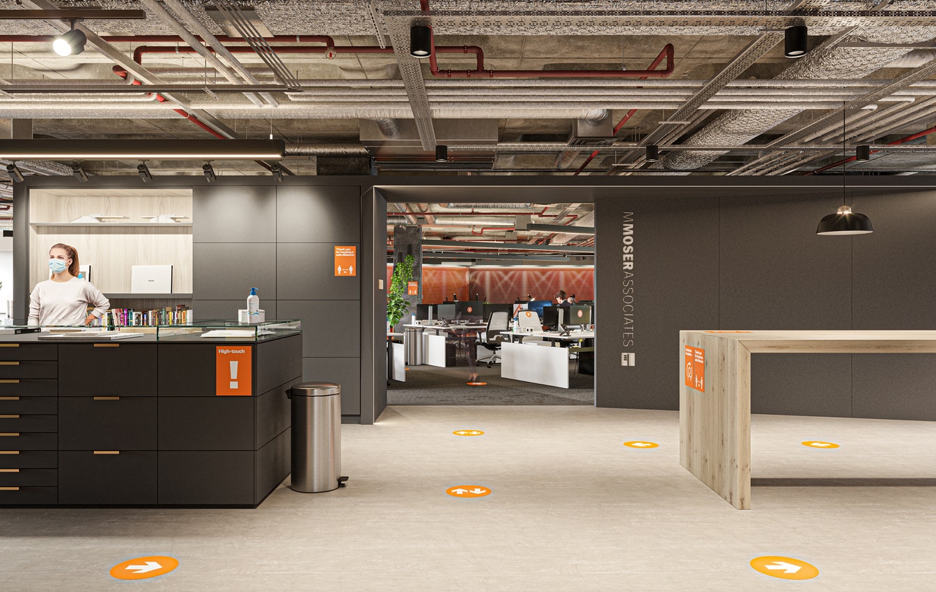 打造能够应对COVID-19的办公室不但需要对工作场所的设计加以改造,还需要在行为上做出改变。员工必须始终保持2米的社交距离,并且沿顺时针动线走动,以便尽可能减少与其他人的接触。我们会根据政府发布的指南,持续对这些措施进行评估。