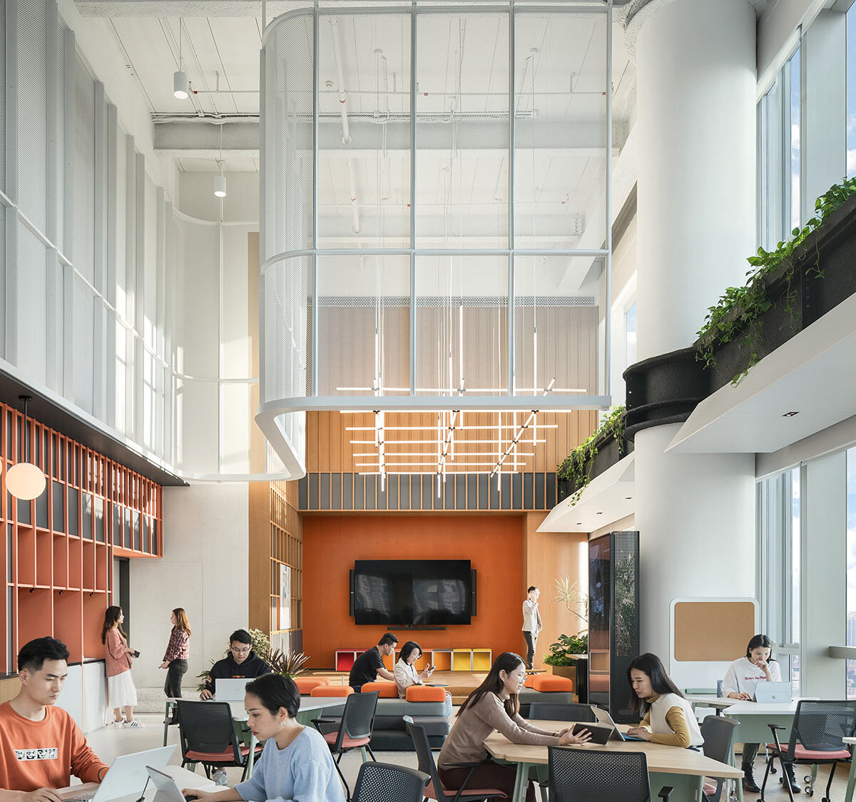 设计融合了智能办公、绿色环保和身心健康的理念,使员工和访客在各个触点上都能从最新的人脸识别技术、智能工位和会议预定系统、无接触门禁中获益,并拥有健康的工作环境。此空间已经取得了WELL健康-安全评价准则认证。