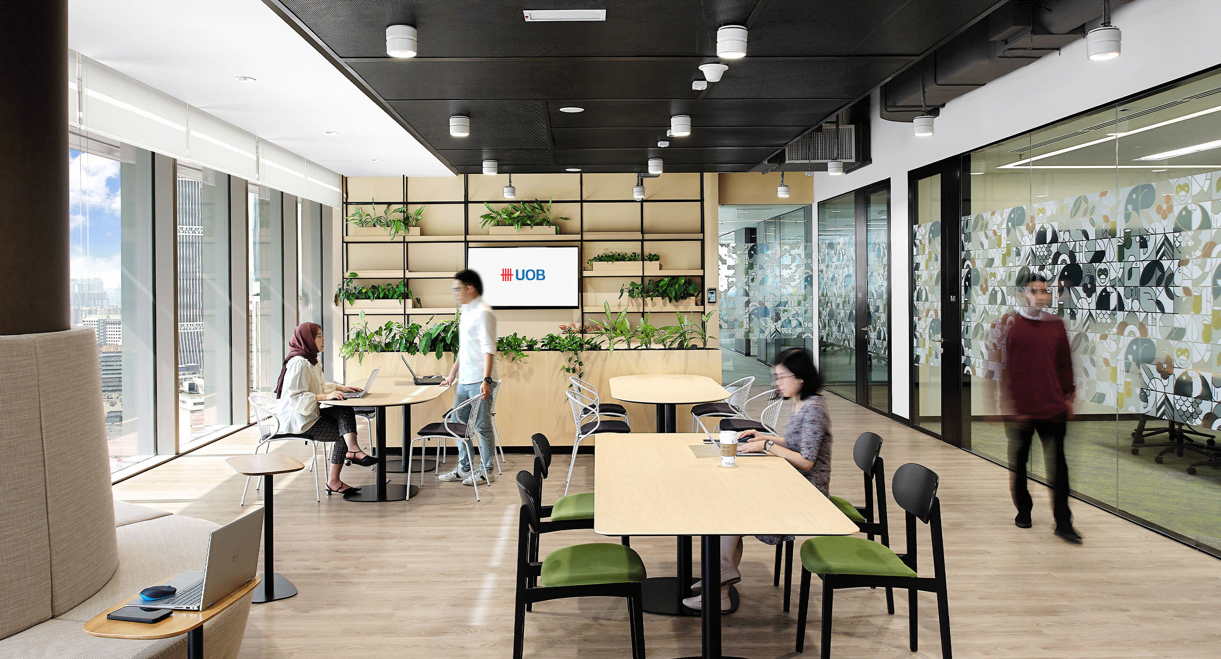 基于建筑本身的可持续框架,我们的团队充分发挥专业知识,将大华银行以人为本的价值观融入新工作场所中。我们充分利用了落地窗,确保了最佳的自然光线。此外,通过亲生物设计和符合人体工学的家具,为员工营造健康和舒适的环境。休息区和其他支持身心健康的设施则提供了放松的空间,促进了一个有益身心健康的环境,展示了大华银行对员工的承诺。
